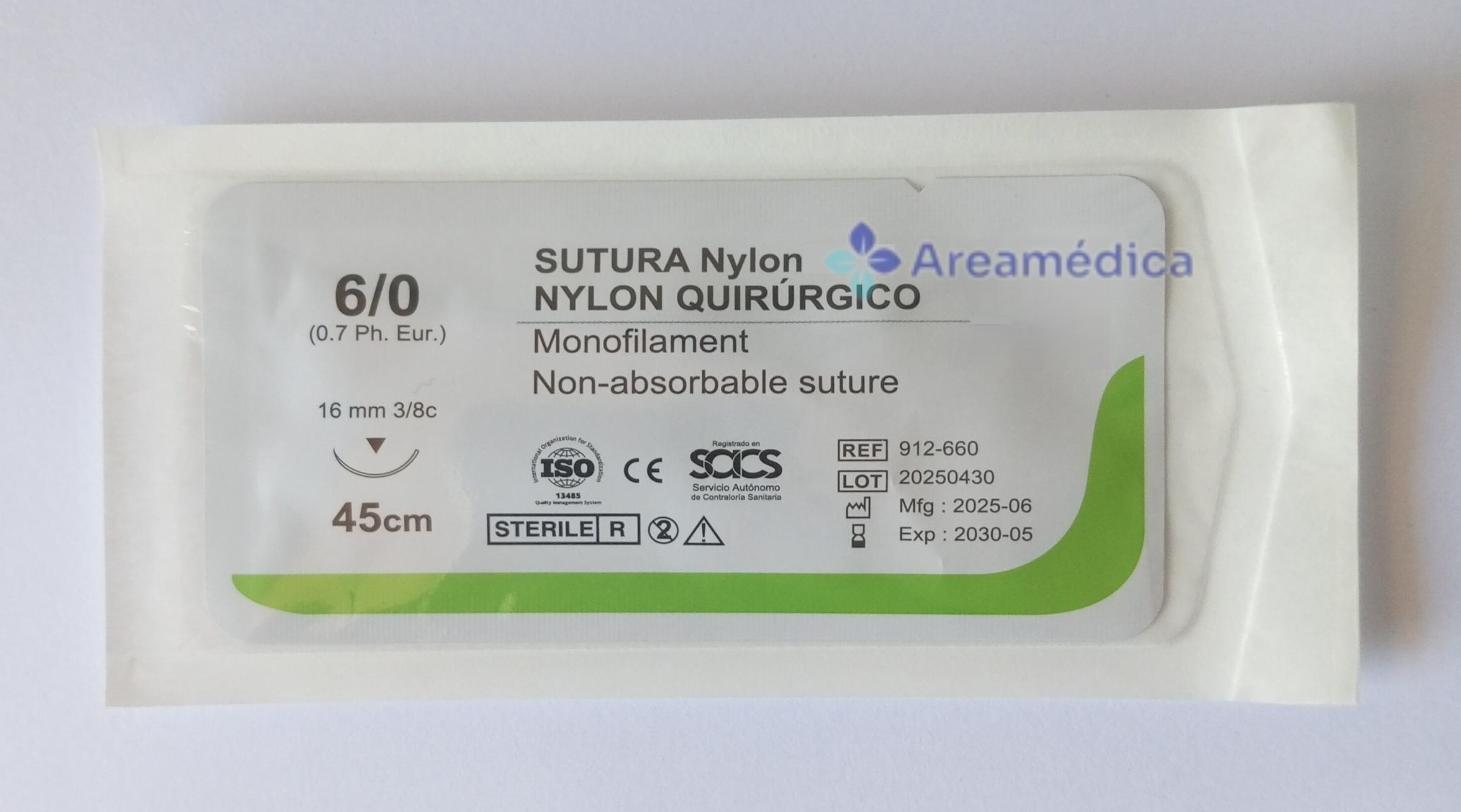 - Aguja: 3/8 círculo/ 16 mm
